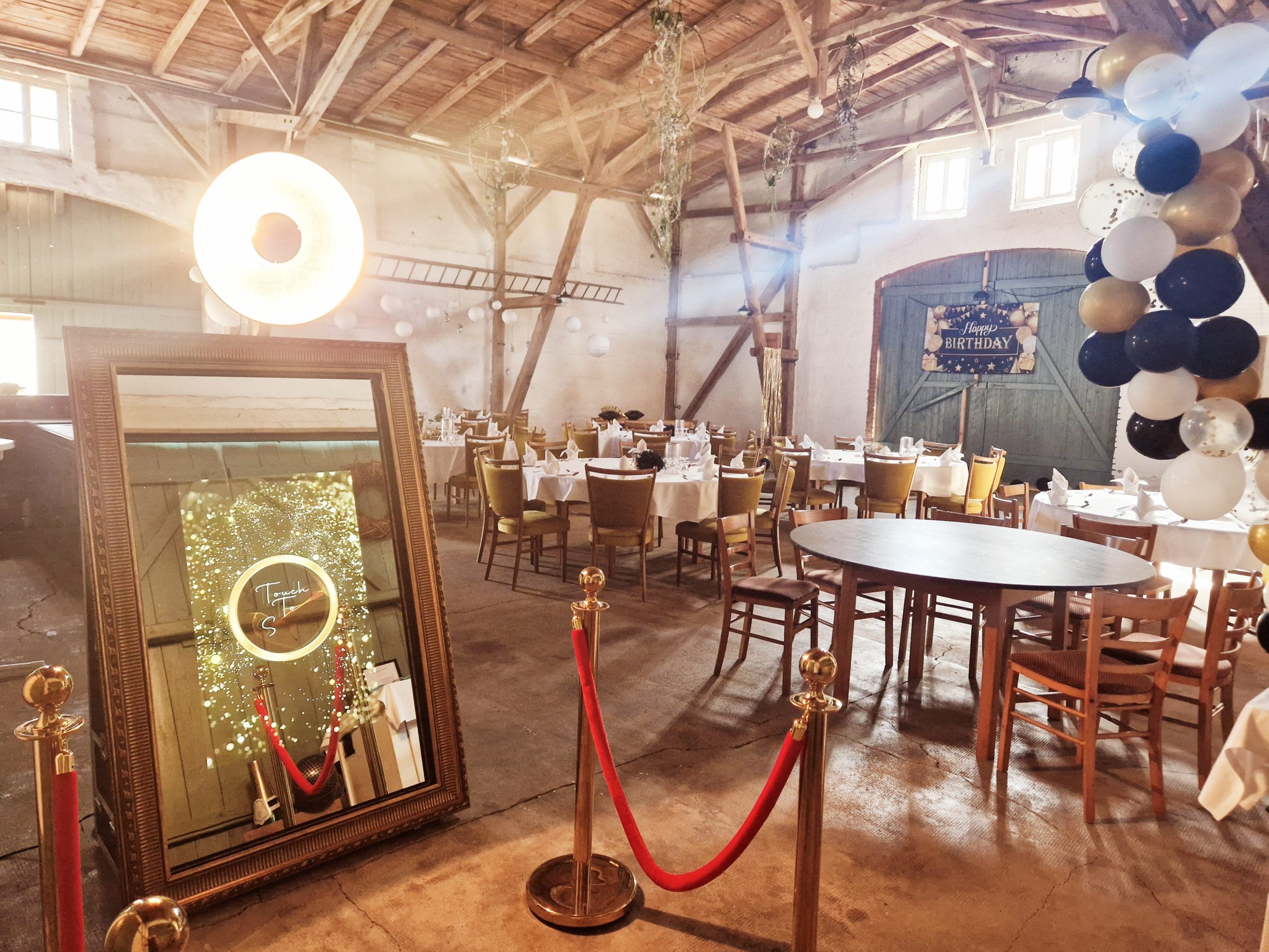 Der Erlebnisspiegel ist ein Full-Size Spiegel mit integrierter Spiegelreflexkamera. Ausgewählte Animationen und die kinderleichte Bedienung per Touchscreen bieten jede Menge Spaß für Dich und Deine Gäste. Durch den professionellen Fotodrucker lassen sich die Bilder in wenigen Sekunden drucken, für schöne Erinnerungen in Studioqualität.